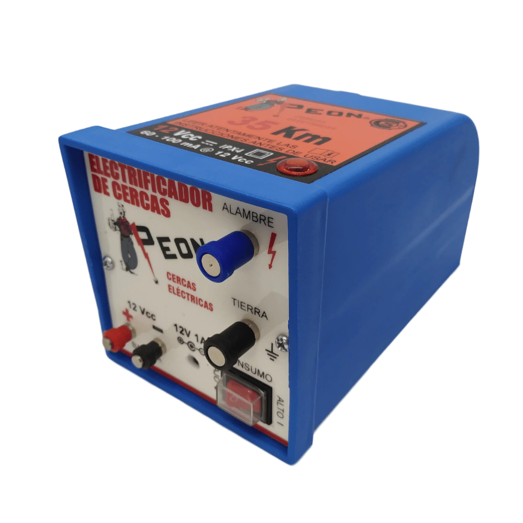 Boyero Peón 35 km Dual: Este modelo ofrece hasta 10,000 voltios y puede conectarse a corriente de 220v o batería de 12v, cambiando automáticamente a batería en caso de corte de luz. Con su luz testigo y selector de consumo, es eficiente en el manejo de energía y cuenta con una garantía de 2 años.