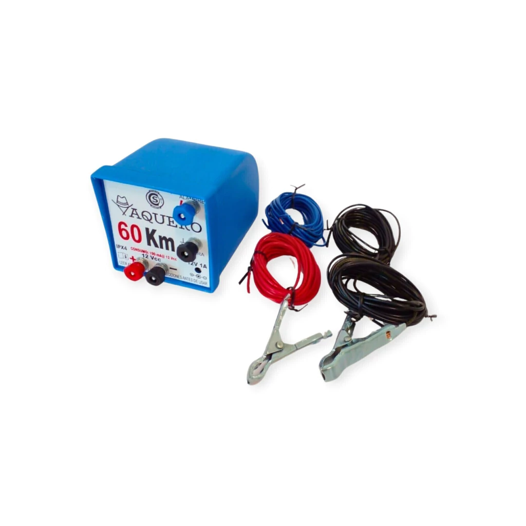 Boyero Vaquero 60 km Dual: Capaz de cambiar automáticamente a batería en caso de cortes de luz, este electrificador es eficiente y de bajo consumo. La descarga de hasta 10,000 voltios es suficiente para la contención de ganado sin riesgo para animales o personas.